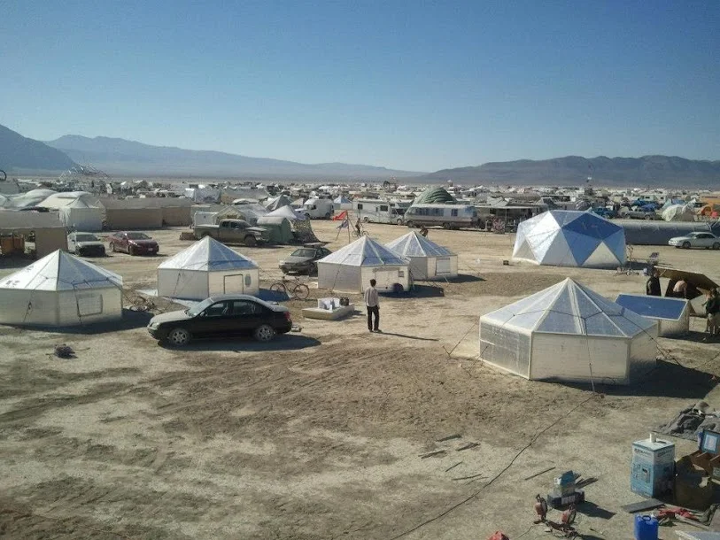 Inspired by the Mongolian yurt, these DIY structures assemble with duct tape and cords, effectively blocking out the sun and dust. You can find plans at the Hexayurt Project which encourages "free hardware housing for the world."