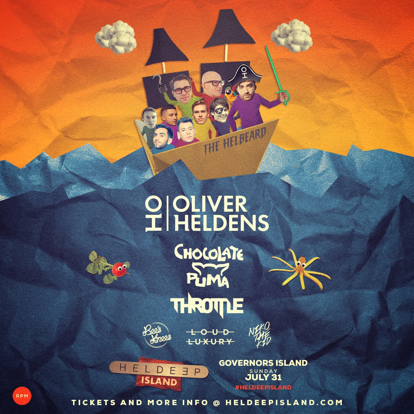 Sunday, July 31stRPM Presents...Oliver HeldensHeldeep Island w/Chocolate Puma ThrottleBee's Knees Loud LuxuryNiko the KidShuffle over to bit.ly/heldeepisland for tickets! VIP table inquires: vip@rpmpresents.com or 917-907-0121Governors Club, Governors Island18+ Oliver Helden's Heldeep Island Ticket Giveaway Comment