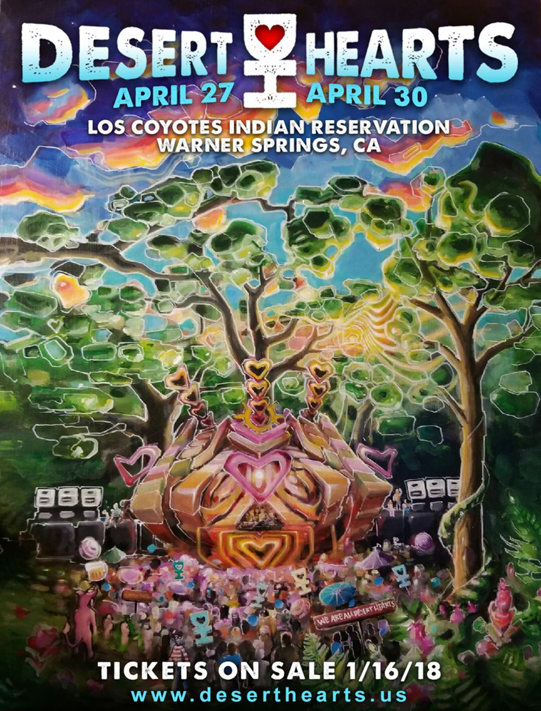 The wait is finally over, their love-swept community that Desert Hearts announces its return to Los Coyotes Reservation April 27th-30th to once again liberate its soul with 72 hours of non-stop house, techno, peace, and love.
