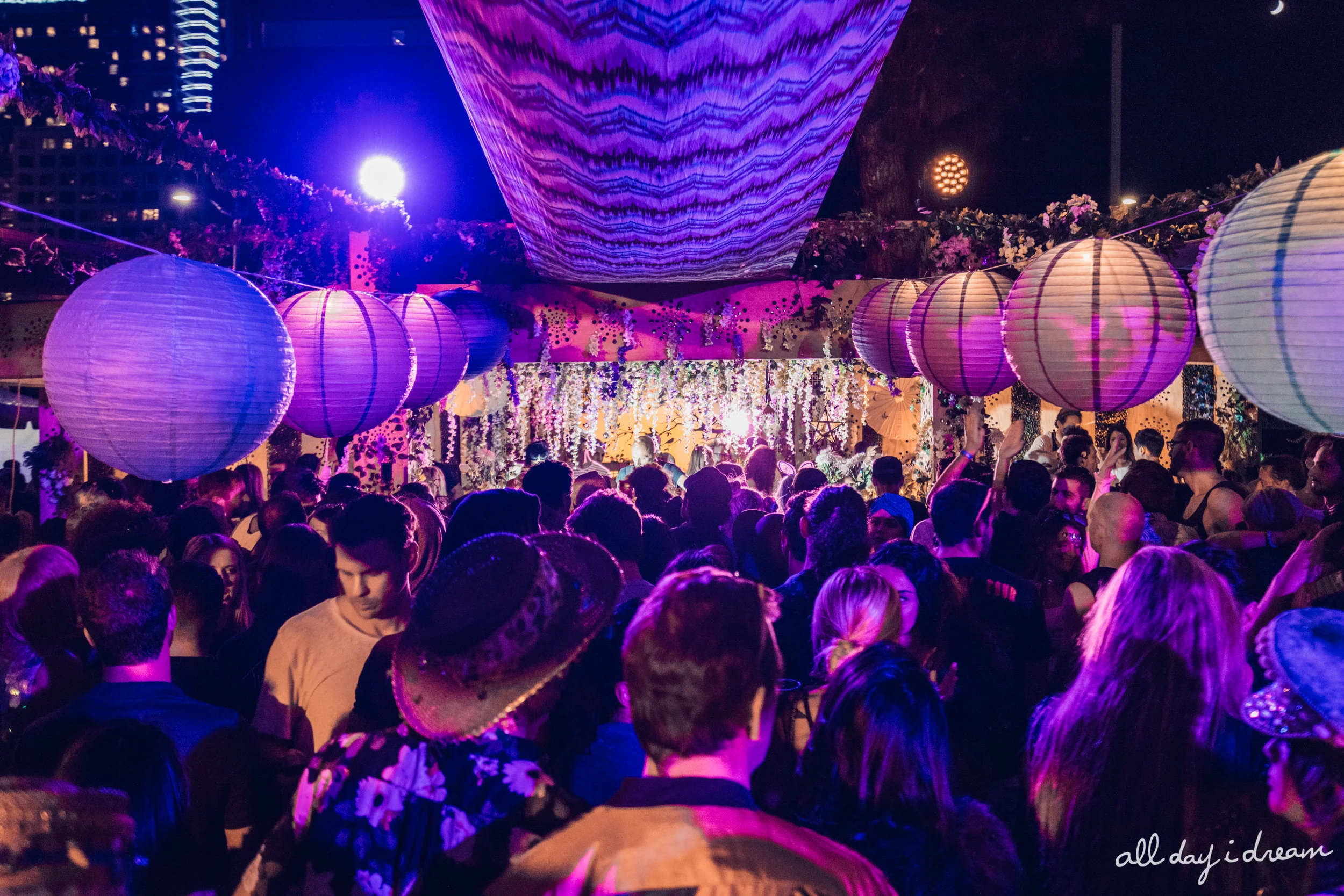 Giving the partygoer (or “Dreamer”) more than just the usual short DJ set, All Day I Dream aspired to create it's own unique ambience through the combination of the musical selection and journey as well as unique venues, each decorated with draped fabric, fairy lights and lanterns creating an unparalleled and magical atmosphere.