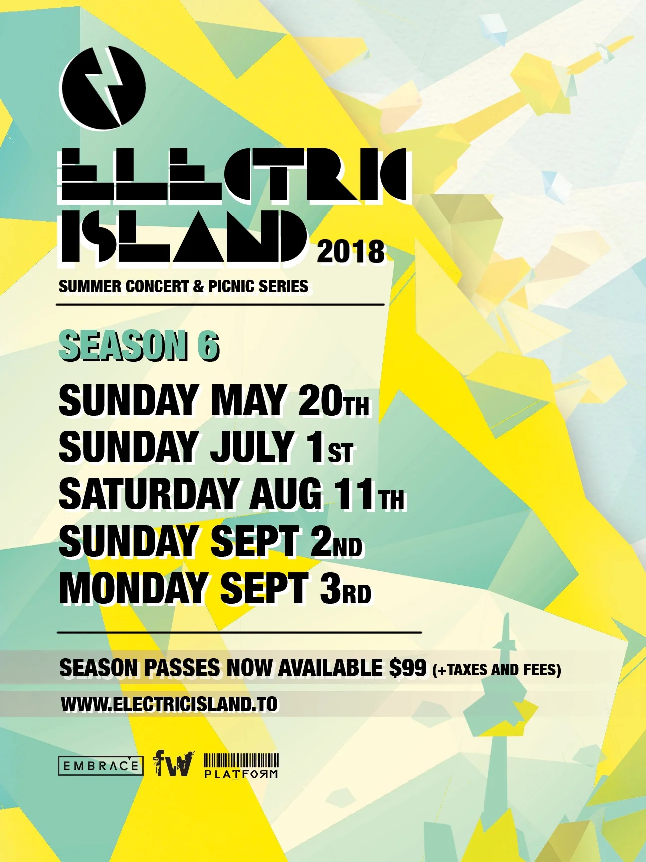 Early bird season passes are now available for only $99 + taxes & fees. At just twenty dollars and change per event, you really can't go wrong with an epic lineup that Electric Island offers. Note that passes do not include ferry ticket and as always, arrive early to catch those day vibes! So save the dates and stay up to date for artist announcements from Toronto's best outdoor festival - Electric Island is back!