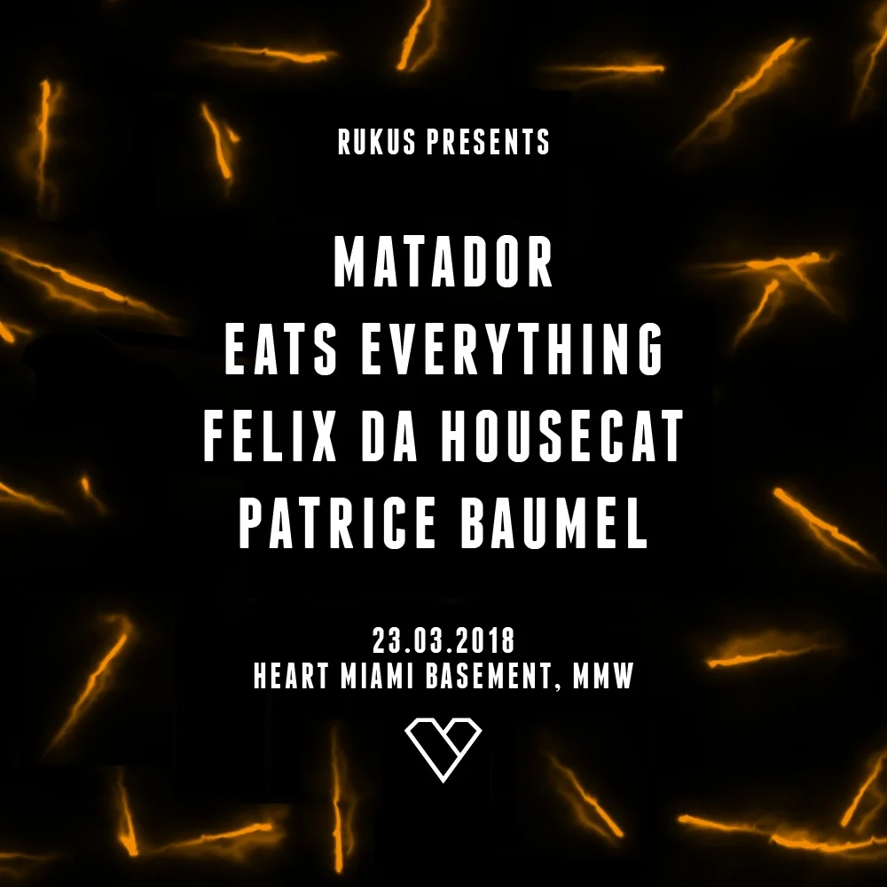 The showcase of label RUKUS is non-other than Matador, coming to Miami Music Week to expand the mind and souls of techno and house music lovers. Joining Matador in Basement of Miami’s Heart Nightclub on Friday, March 23rd will be Eats Everything, Felix Da Housecat, and Patrice Baumel.