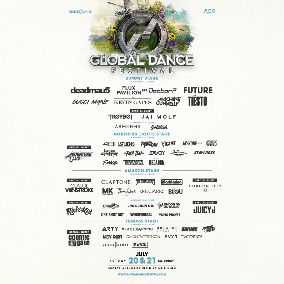 Festival season is in full swing, Denver’s beloved music event Global Dance Festival makes its return to Sports Authority Field at Mile High for its sixteenth installment. The largest annual summer music festival in the Rocky Mountain region will take place on July 20-21st. What makes Global Dance Festival an essential to attend this year? Besides from the diverse lineup and beautiful scenery in Denver, Colorado is the side attractions and unbelievable vibes. For two action-packed days, attendees are welcomed to explore a massive playground as the grounds at Sports Authority Field at Mile High are transformed into a true, all-encompassing festival experience that includes four massive stages and a Silent Disco, larger production than ever before, a food truck marketplace, free carnival rides, a huge decked out VIP village with private bars, bathrooms and lounge seating areas, stage-side cabanas, an art park with massive installations and room for more attendees than ever. There are five reasons why you should attend this year’s Global Dance Festival.