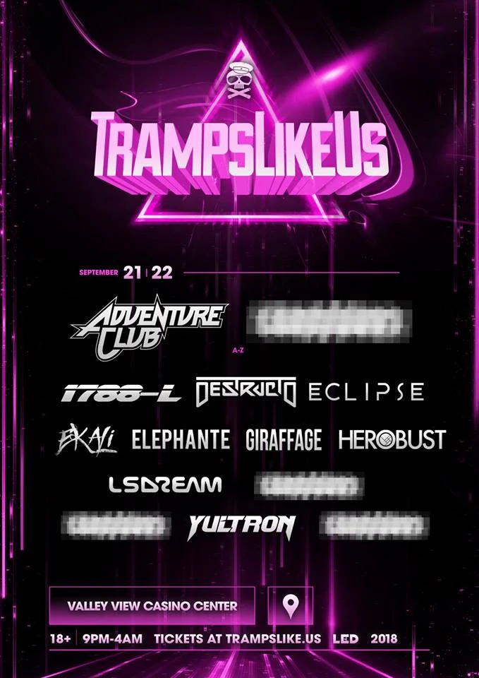 Ready for the time of your life! LED presents Tramps Like Us is returning to the Valley View Casino Center in San Diego. Tickets are still available here. Your first look at the line up is below, it features Adventure Club, Ekali, Herobust, LSDREAM, Yultron and more.