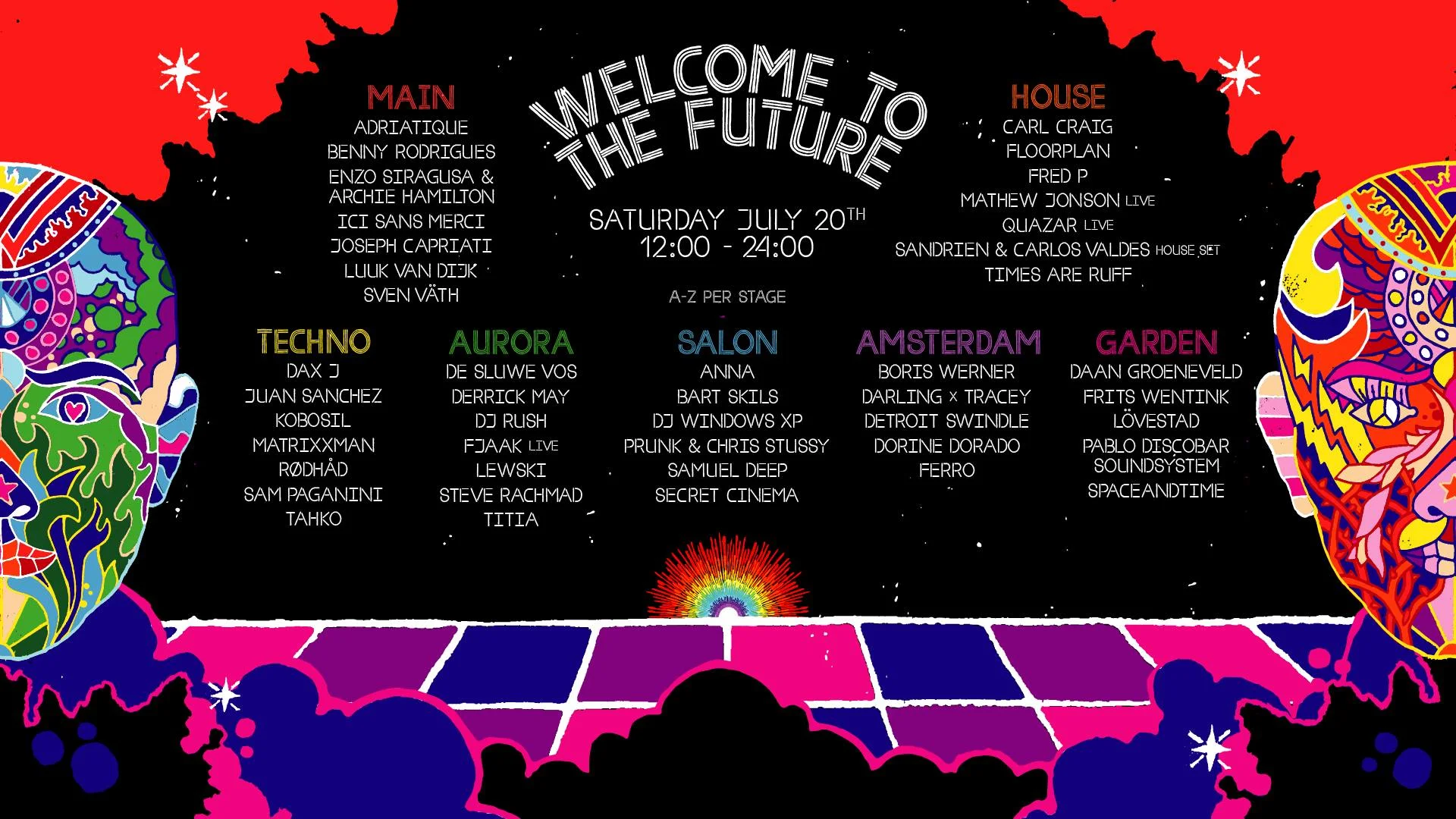 The Amsterdam stage that has been around since the very first edition. It is dedicated to the hottest local talent and some of the best friends of the Welcome to the Future family: Detroit Swindle, Boris Werner, Ferro, Dorine Dorado and Darling b2b Tracey. This season, Amsterdam will present itself outdoors, on a new location and in a new design.