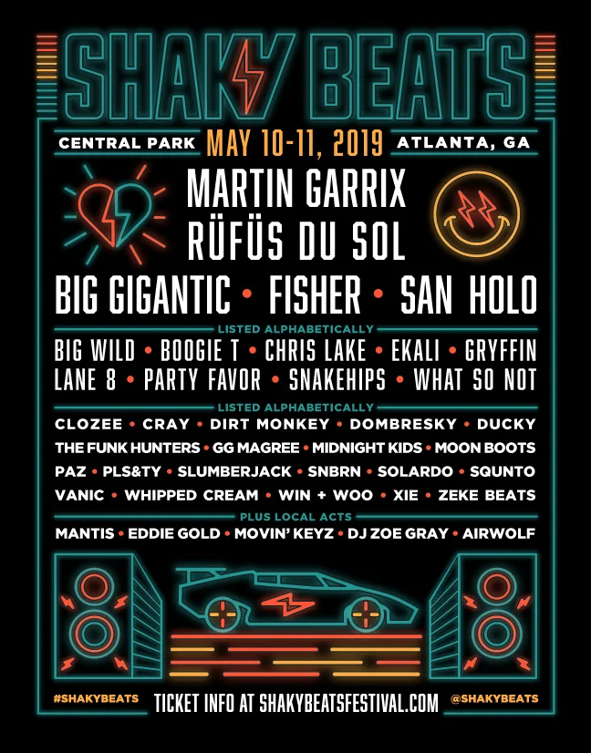 Atlanta’s Shaky Beats Music Festival has just announced its 2019 lineup for its fourth installment, returning to its location at downtown Central Park on May 10th - 11th. Powerhouses Martin Garrix and RÜFÜS DU SOL are set to headline the festival plus seeing over 35 acts across 4 stages for two-days of music, fun, and culture. The lineup also includes Big Gigantic, Dirtybird’s own FISHER, Chris Lake, Big Wild, Gryffin, Party Favor, Lane 8, Moon Boots, Solardo, and many more.