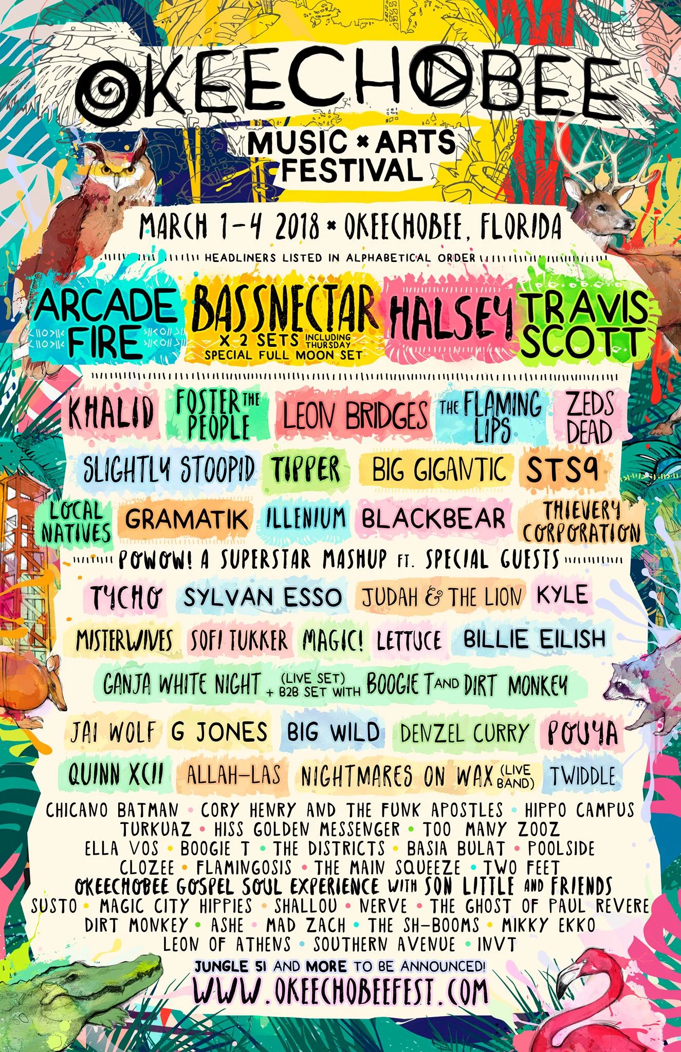 Okeechobee 2018 lineup is better than ever, with the likes of Foster the People. The Flaming Lips, dubstep duo Zeds Dead, Slightly Stoopid, Gramatik, Illenium, Ganja White Night (live set) and also a special back-to-back performance with Bookie T and Dirt Monkey. Headlining Okeechobee includes Arcade Fire, Halsey, and Travis Scott. There wouldn’t be an Okeechobee Festival without Bassnectar, set to perform a special full moon set also performing twice during the festival. Okeechobee is known for its ‘Powow Superstar Mashup’.