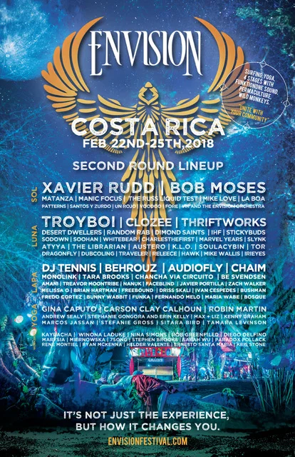 With gorgeous rainforest backdrops, four breath-taking stages, and 6 workshop spaces, Envision Festival brings a subsection of thought-provoking music and education to the shores of Costa Rica. Attendees will be treated to a soulful array of performances from the likes of multi-instrumentalist indie electronic act Bob Moses, the empowering singer-songwriting of Xavier Rudd, South American live Tribal Tech House Band Matanza, the soulful electronic genre-blasting Manic Focus and much more world-class live acts taking over the Sol Stage.