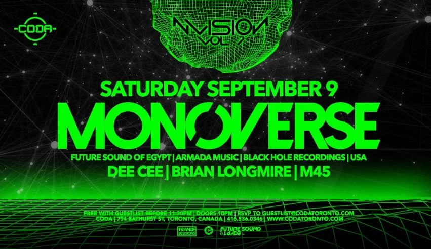 Toronto's Trance Family comes together on Saturday, September 9. The second installment of N'VISION will see New Jersey's breakthrough talent Monoverse taking over CODA's booth. A familiar name among prestigious Trance labels including Future Sound of Egypt, Armada Music, Coldharbour Recordings, plus much more, Monoverse consistently releases powerful productions that will surely light up CODA's dance floor!