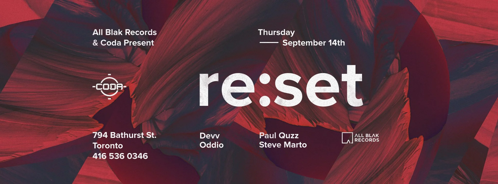 On Thursday, September 14 CODA is thrilled to welcome a fresh new weekly series in conjunction with Toronto's All Blak Records. Re:set will take place every Thursday, featuring music curated by All Blak Records -- expect groovy, minimal, intelligent beats. Come see what happens when CODA's back room is transformed into an intimate den where music enthusiasts can expand their minds and ears.