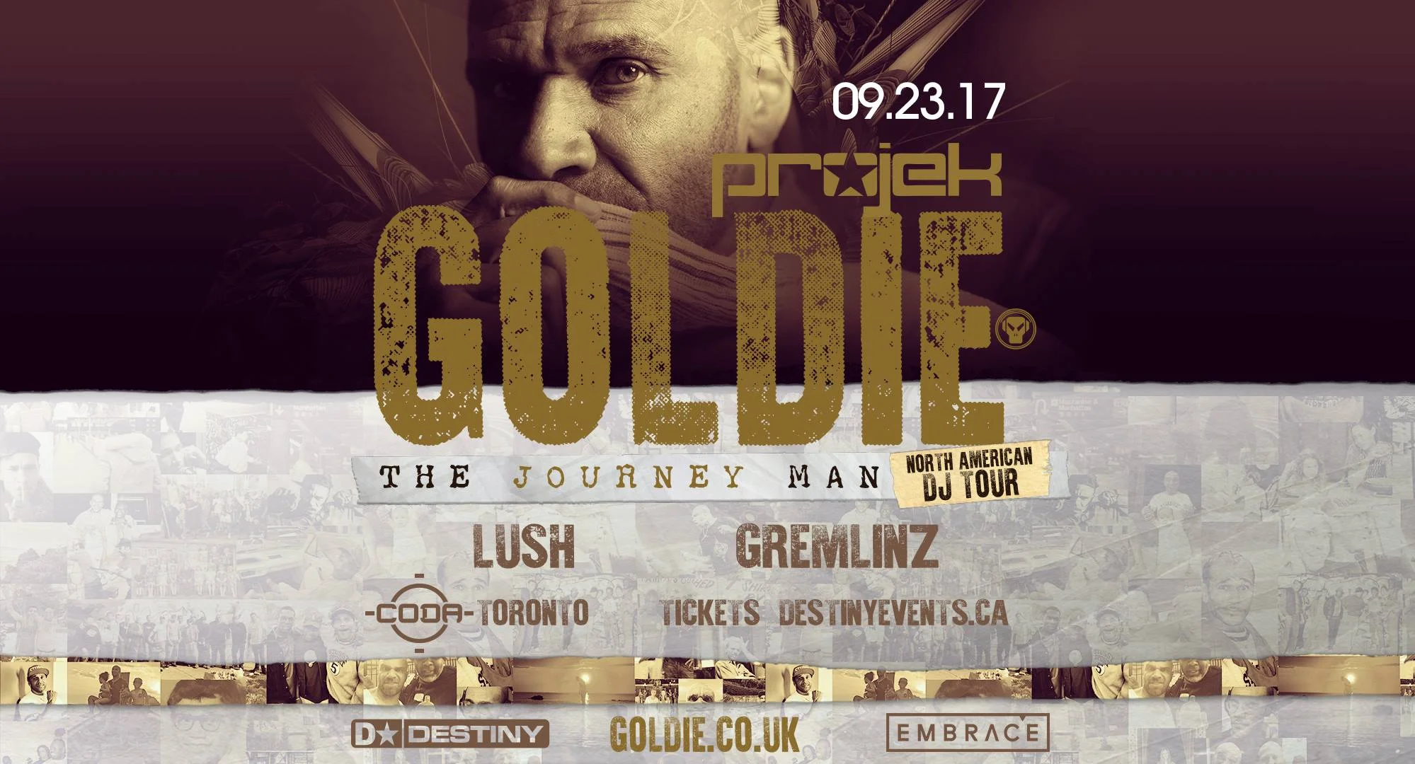On Saturday, September 23 Destiny and Embrace partner up to bring one of the UK's greatest drum 'n' bass exports to CODA - it's Goldie with 'The Journeyman Tour'. Never adhering to the constraints of one genre, Goldie pulls from bass, Hip Hop, break-beats, experimental and just about everything in between to deliver tremendously energetic performances.