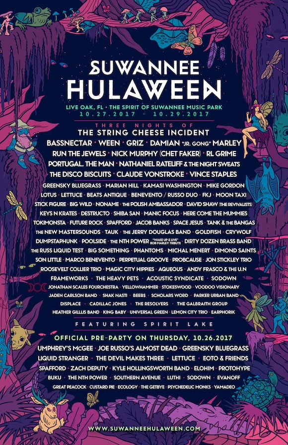 Suwannee Hulaween has announced a second round of additions to this year’s musical lineup, rounding out the bill with their most uniquely crafted and blended lineups to date. Hulaween returns to the historic Spirit of the Suwannee Music Park for its fifth year installment, once again setting the bar high in the international festival space not only offering an expansive roster of world-class live and electronic talent but a fully experimental experience.